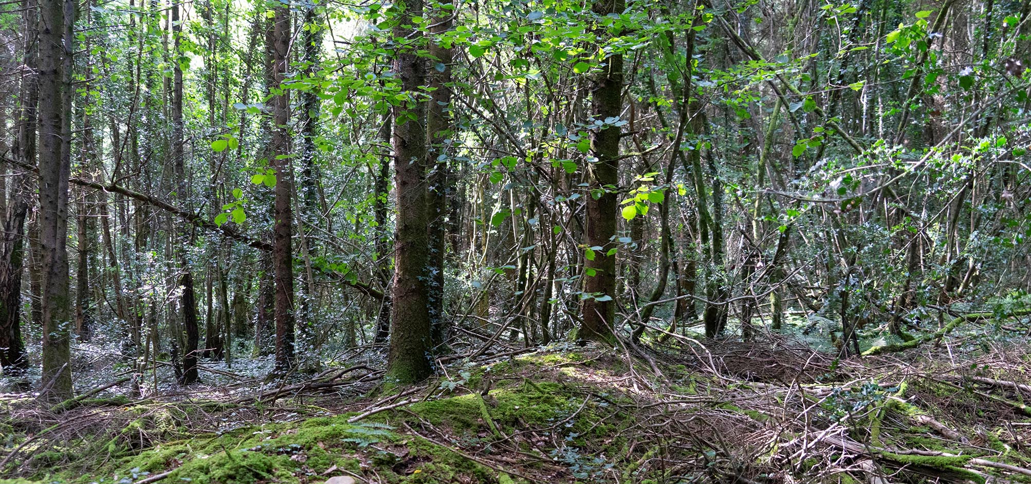 North of the road between the church and castle is a narrow public road that leads to the woods at Old Kilcash. These are now maintained by Coillte, the national forestry agency, and are open to the public. The famous oaks are gone and have been replaced by evergreen trees. Parking at the entry to the wood is very limited and it may be easier to walk to its entrance from the church or the castle (about 60m).